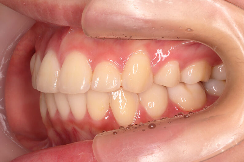 治療後は前歯は後退し、前歯の傾斜度も良くなっています。 口唇の緊張感も改善し、エステティックラインも綺麗になりました。