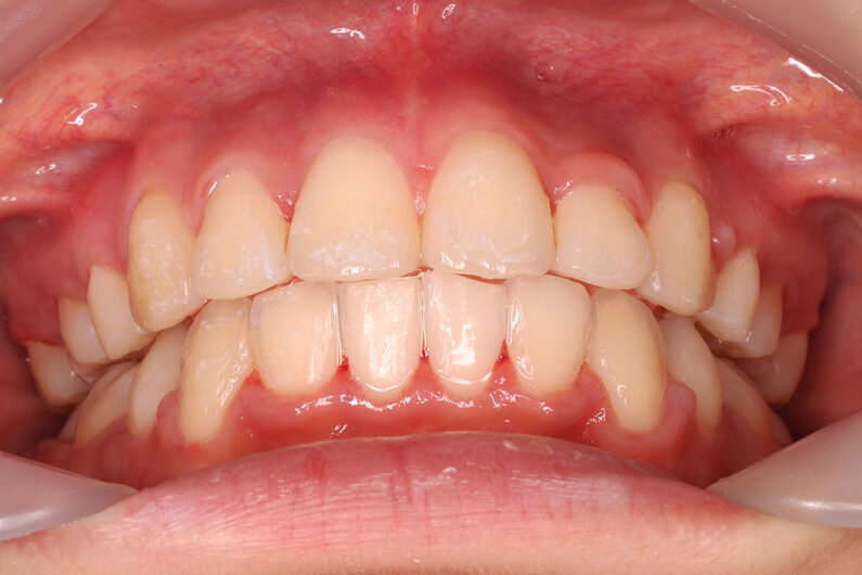 他院から紹介の患者さんです。 前歯、下の歯のガタツキをきれいにしたいということで治療を決断されました。