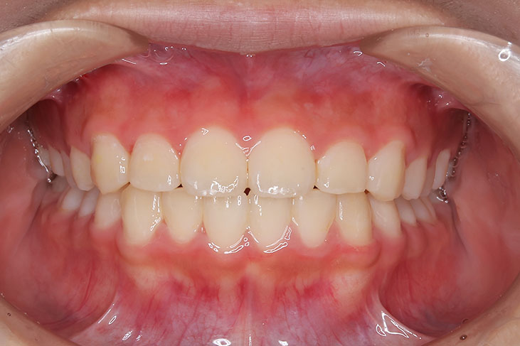 マルチブラケット 動的治療期間 2年6か月 調整回数16回 特に問題もなく、保定後も安定しています。
