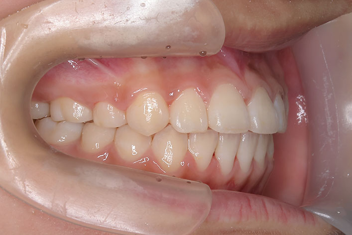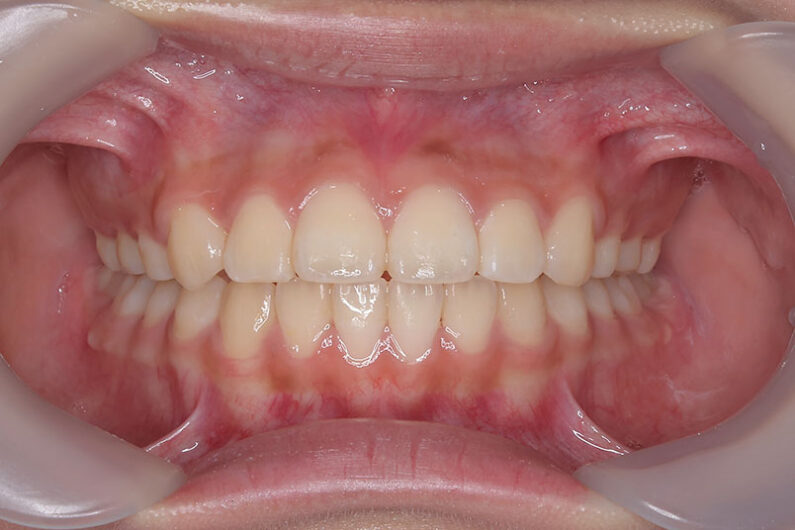 診断から、上顎のみの小臼歯抜歯により治療を開始。仕上げています。 マルチブラケット 動的治療期間 2年7か月 調整回数20回 平均来院間隔1.5か月に1度の来院でした。